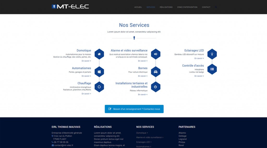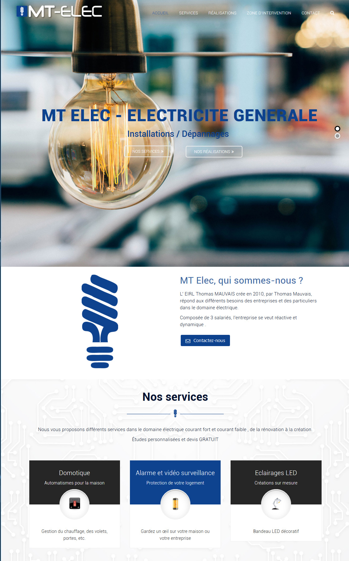mt-elec.fr Entreprise d’Electricité Générale, réactive et dynamique, qui répond aux différents besoins des entreprises et des particuliers dans le domaine électrique. Située dans le Sud Seine-et-Marne ClientMT ElecProjetSite internetCatégorieoffLineActivitéElectricité générale