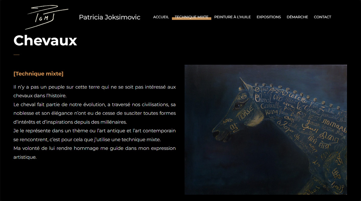patricia-gm-joksimovic.com Artiste peintre ClientPatricia JoksimovicProjetSite internetCatégorieonLineActivitéArtiste peintre Voir le site