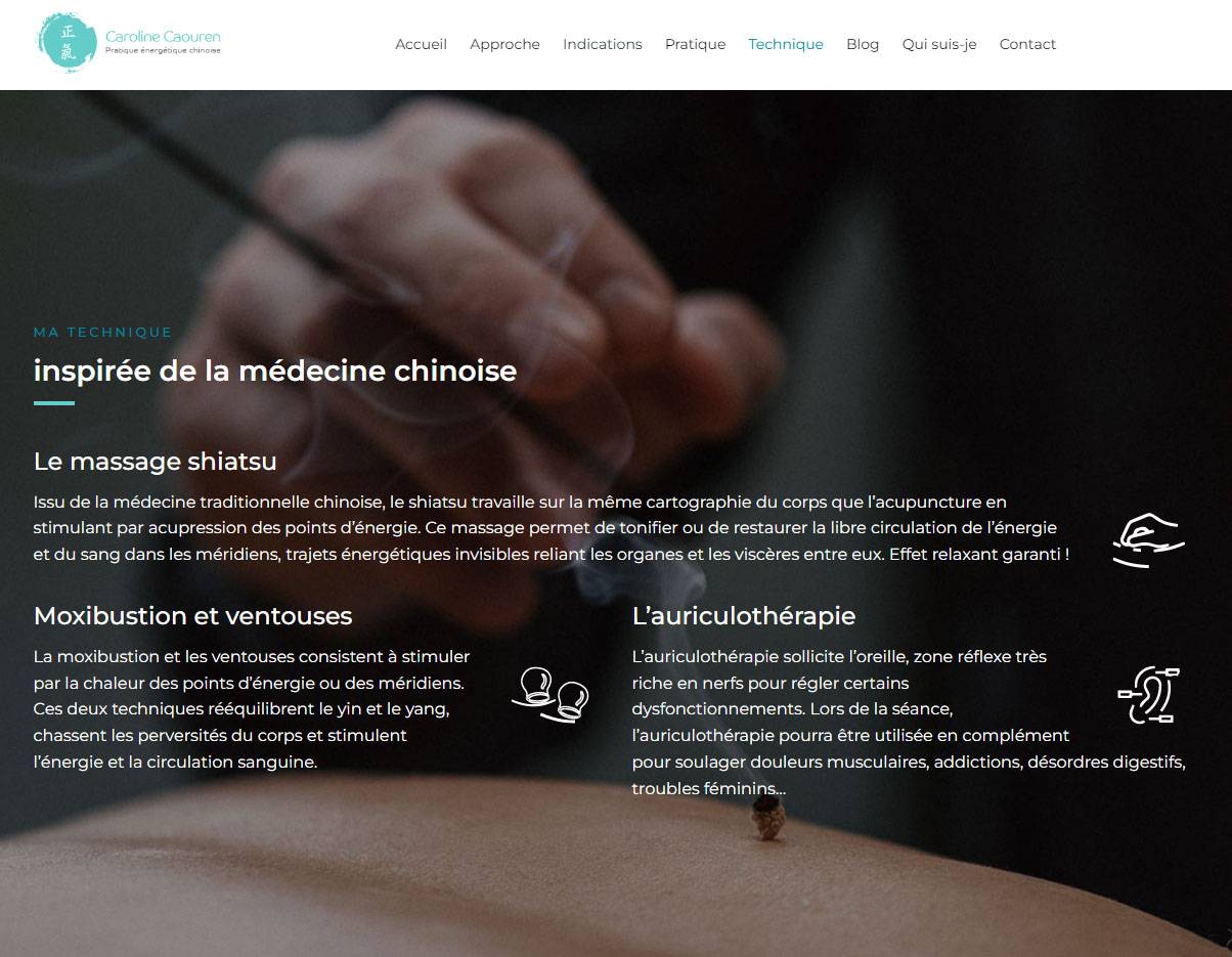pratique-energetique-chinoise.fr Massage shiatsu, Moxibustion, Ventouses, Auriculothérapie ClientCaroline CaourenProjetSite internet, logo, carte de visiteCatégorieonLineActivitéBien-être, massage, shiatsu Voir le site