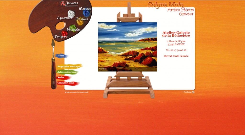 solyne-malo.com Artiste Peintre, Graveur, située en Touraine. ClientSolyne MaloProjetSite internetCatégorieoffLineActivitéArtiste Peintre Graveur
